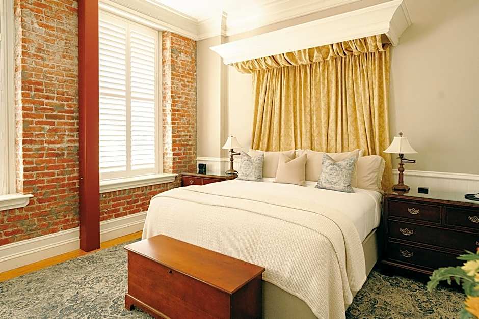 This king room offers in-room gourmet coffee and tea and a refrigerator with free water and creamer. Non-allergenic down pillows and extra cotton blankets offer additional comfort. The private bathroom features locally made toiletries, plush terry robes, a hairdryer, and a make-up mirror.